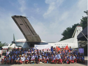 接着,志愿者们带领同学们来到停机坪,由飞行器学院讲解队同学向小朋友们逐一介绍停放的每一架飞机。“讲解员哥哥,我想请问一下我们可以摸一摸飞机吗,这是我第一次近距离接触我喜欢的飞机。”小朋友们在一架架飞机前显得十分兴奋。可是为了防止锈迹划手,志愿者们也一次次耐心地劝导小朋友们不要轻易触摸飞机。在安全有保障、秩序有维护的环境中,小朋友们在停机坪这一站可谓收获良多。