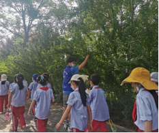 活动当天一早,我院志愿者便前往航空一小接引师生和家长前往我校。在出发之前,航空基地一小的同学们在学校主席台前列队,举行庄严的动员大会,航空一小乔永智校长着重强调了研学之旅中的重要意义和注意事项,为同学们开启了研学之旅的第一课。早八点半,全体师生及志愿者整装出发,按照班级有序踏上研学之路。路上,随行老师及志愿者为学生们耐心讲解沿途植物,路牌及标识,孩子们也解放了好奇天性,不断向志愿者们提问,一路上,小朋友们不仅与我院志愿者相处融洽、构建起和谐有爱的关系,也扩充了知识、发现了大自然带来的无限“宝藏”。