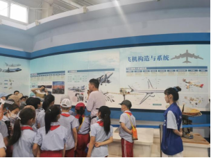 最后,志愿者带领同学们来到航空馆,同学们有序进馆后更加深入地学习了航空知识。在馆内,小朋友们看到了飞机的“心脏”——发动机、机翼拆解件、各类飞机模型,也了解了我国航空史及航空楷模的先进事迹。航空馆为同学们展示了百余年来中国航天人为航空事业无限追求、不懈奋斗的感人故事,通过这次参观,同学们感受到国家国防建设的蓬勃发展,深深领会到国家正在不断强大,而作为新时代的小小少年,只有安心学习,将来才能为国家建设献出自己的力量。