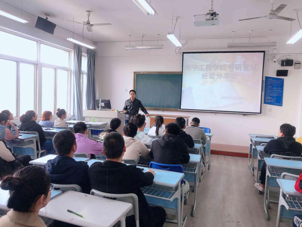 为了帮助参加复试的同学提前了解复试流程,提高复试技巧,做好“应战”准备,3月16日,beat365中文官方网站在阎良校区教学楼1314教室,举办了考研复试经验交流会。交流会特邀我校2020届刘盈、王朝阳两优秀考研学生进行了经验分享,beat365中文官方网站党总支副书记郝杰,辅导员马晨,43名2021届考研复试学生参加了会议。