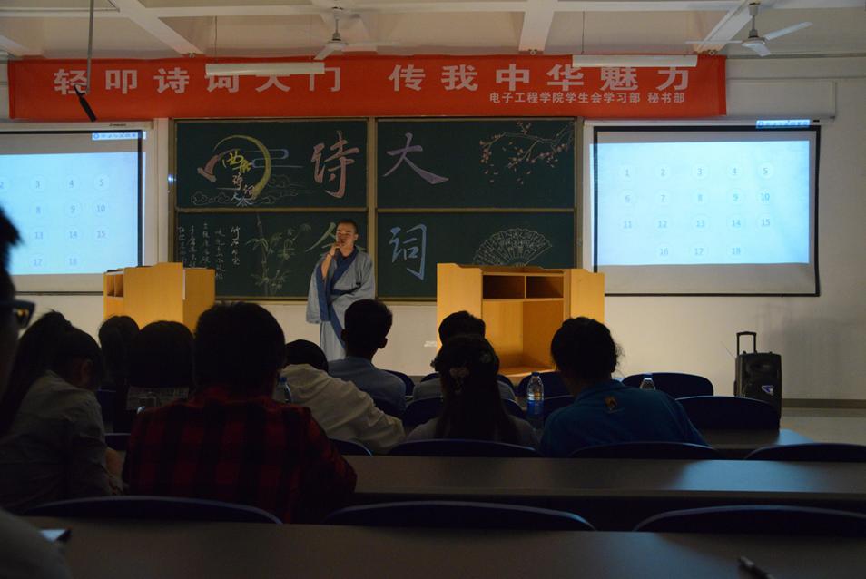 中华民族的传统文化源远流长、博大精深。经典古诗文作品是中华民族的瑰宝,更是中华民族精神品格的真实写照。为进一步弘扬中华民族传统文化,让学生接受传统经典的洗礼,打造书香校园文化氛围,59日晚,我院学生会在阶梯二教室进行了诗词大赛的总决赛。