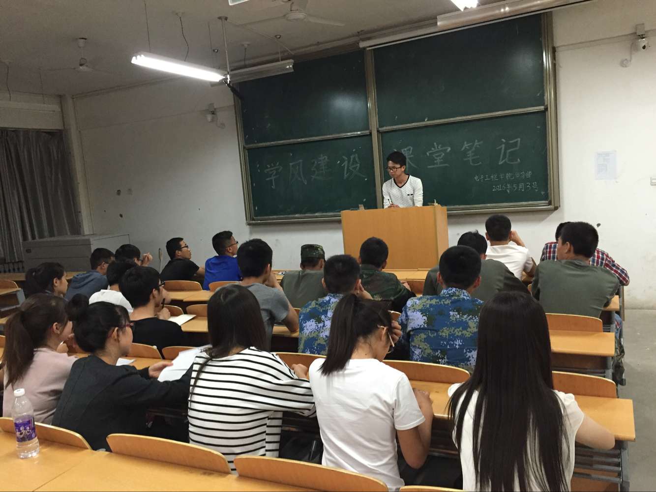 检查课堂笔记,开展学风建设的思想教育。学习部于53日晚八点在阎教楼1322教室进行了“学风建设,课堂笔记”讨论活动,本次活动由学习部副部长尹栋主持,大一全体班长和学习委员参与。