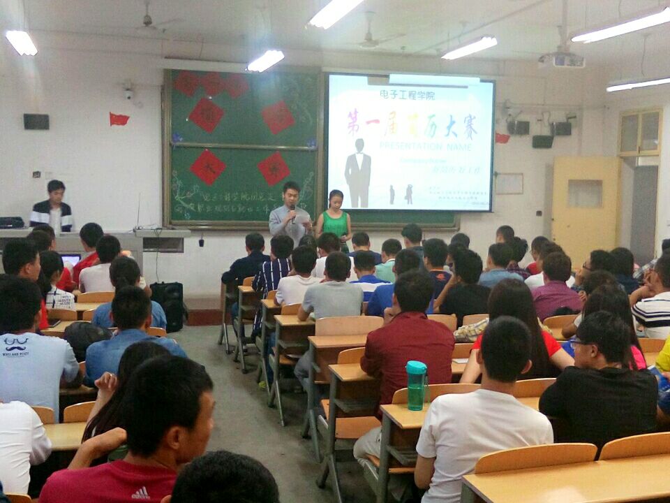 比赛开始,首先是参赛者的个人简历展示环节。44名参赛者的简历风格不同,各有千秋,有的布局设计别致,有的设计思路独具匠心,参赛简历展示结束后,集体观看了网络上比较成功的应聘视频。最后由评委对参赛选手的简历进行点评,在点评过程中,张小妹老师提到大部分选手的简历都存在一定的错误,突出体现在求职信的格式,并在总结中指出,简历的内容应紧紧围绕求职意向而不宜太过空泛;教育背景应详细注明以让HR一目了然;而更重要的是应注意简历的外部细节,如排版、