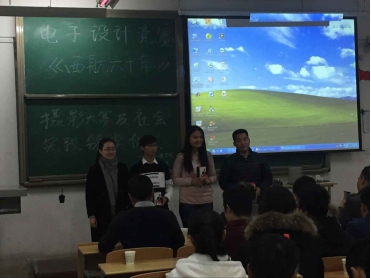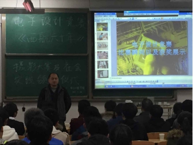 2015年11月26日晚7点,beat365中文官方网站在阎教楼1336教室举办了电子设计竞赛、社会实践及《西航六十年》颁奖典礼,此次仪式院团总支创新创业部主办,beat365中文官方网站党总支侯睿书记、办公室龙卓群主任、学生管理科孙护军科长、团总支葛昊书记大一本科辅导员高蕾老师及近50名学生代表出席此次仪式