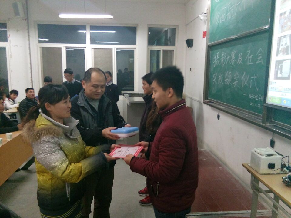 伴随着两位主持人精彩的开场词,本次颁奖仪式序幕缓缓拉开。在我院第三届电子设计竞赛获奖作品展示后,龙老师对本次仪式致辞:“电子设计竞赛是我院重要的竞赛之一。学院非常重视培养大学生实践动手能力,从1995年,我院年年都组织参加,全国大学生电子设计竞赛并且每年都取得了优秀的成绩,同学们从中不仅学到知识,并且动手能力得到提高。”随后,颁奖正式开始,首先颁出电子设计竞赛优胜奖,其次是社会实践获优胜奖,最后颁出《西航六十年》摄影比赛优胜奖。