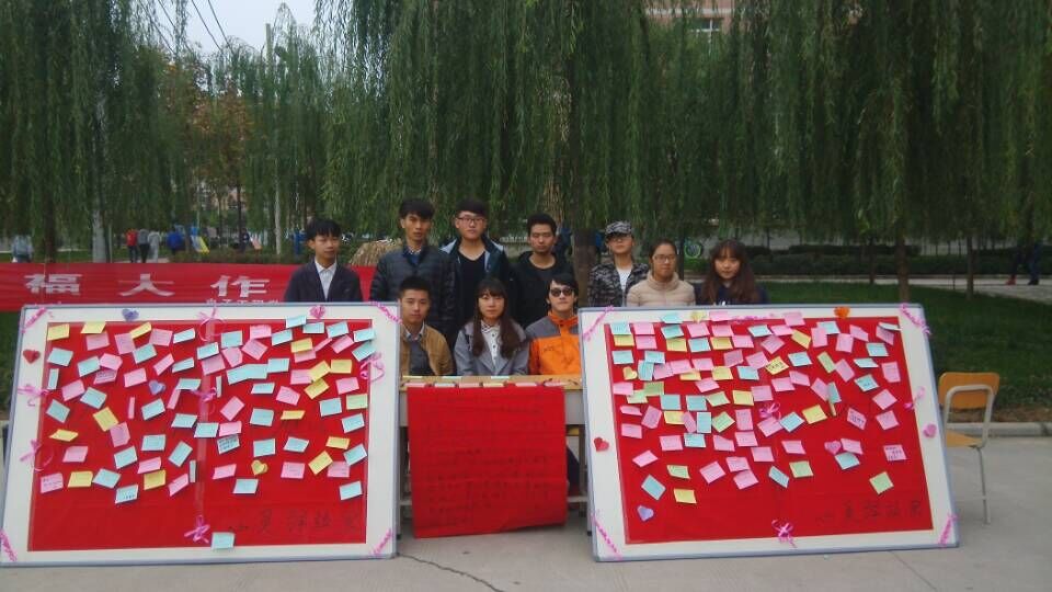 为了培养同学间感情,提高学生交流能力,敞开心扉,勇于面对内心真实感受,构建和谐校园。我院心灵驿站特于11月11日中午在我校综合餐厅门前广场举办了“爱的祝福大作战”为题的主题活动。活动以题写祝福语为主线,参与者为自己心中可爱可亲可敬的人写下最深切的愿望与祝福。