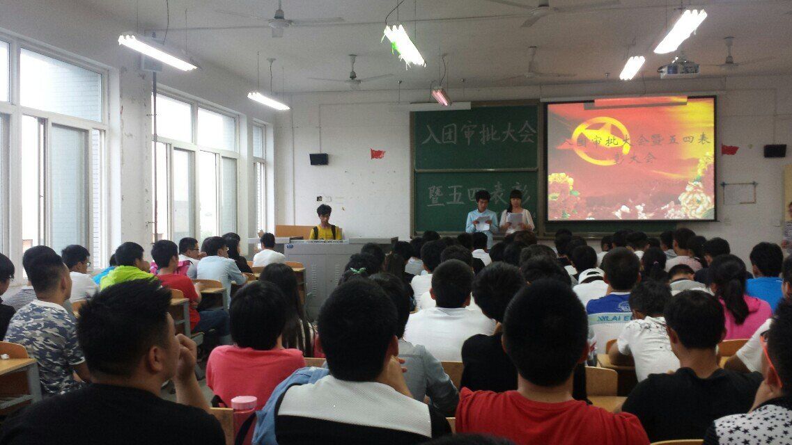 入团仪式在雄壮的国歌歌声中开始,首先由主持人介绍了本次发展新团员的相关情况并宣读新团员名单。并带领75名新团员进行了入团宣誓,全体团员唱团歌,由团副书记代表团员发表了讲话,最后由我院团总支书记葛昊老师为本次大会总结:提醒新团员应该脚踏实地,虚心学习,不断进取,积累智慧。同时再次对本次五四团学工作受到表彰的组织与个人提出表扬与感谢,重点提到我院连续两年荣获校团委颁发的“五四红旗团总支”奖是和我院每一位团、学干部细致热情工作密不可分。