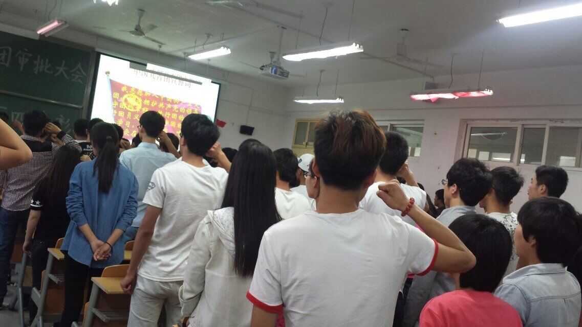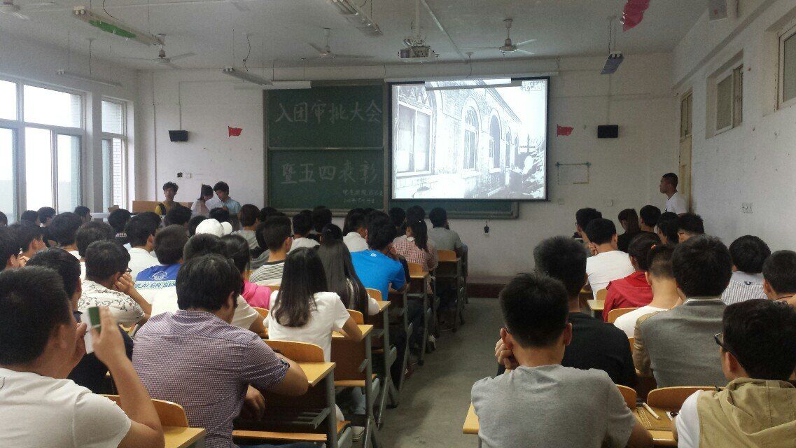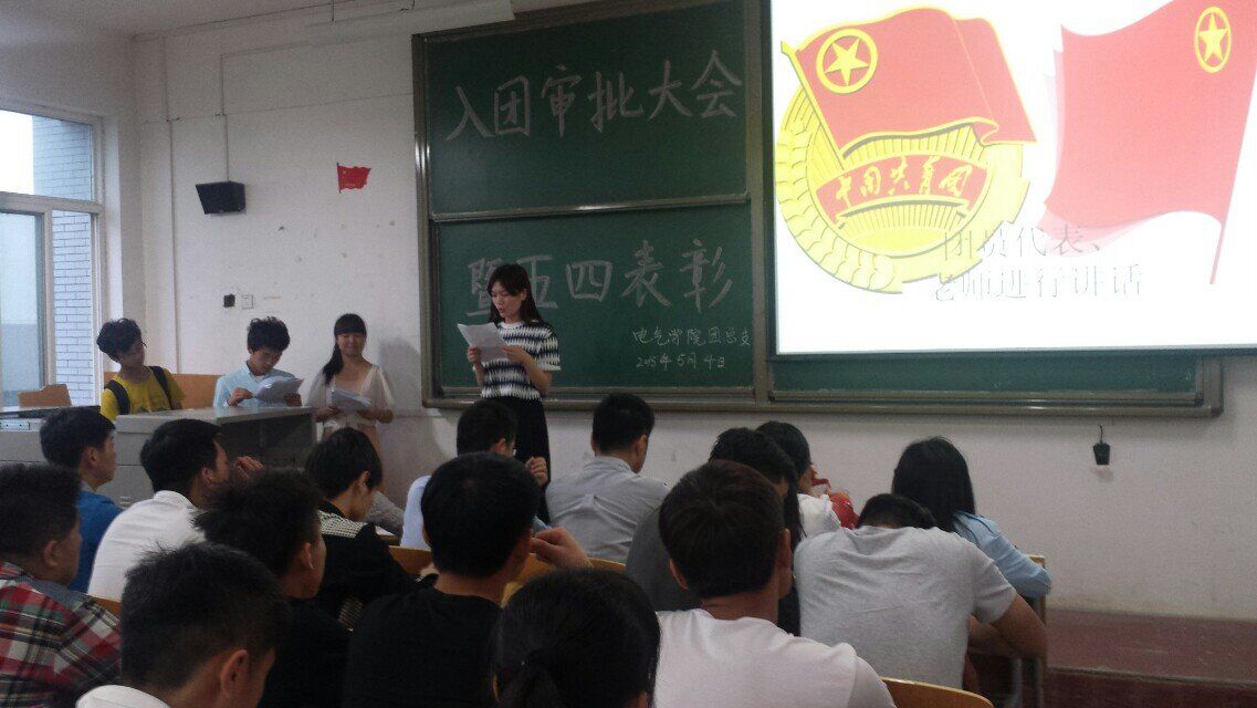 以“学习先辈勿忘国耻,坚定信念逐梦西航”为主题,以“宣誓言﹒迎青春”团员入团仪式为形式的电气学院团总支纪念“五四”运动96周年暨抗日战争世界反法西斯战 争胜利70周年五月“青春主题”活动月于5月4日晚7点在阎教1336教室隆重开幕。2015年全体新团员参加本次大会,我院团总支书记、副书记和学生管理科全体老师出席本次开幕活动。