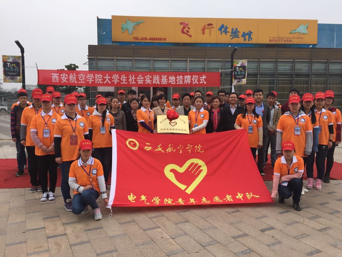 为全面贯彻落实团中央、校党委、校团委相关精神,扎实做好对团员青年的思想教育工作,持续宣扬正能量,用志愿者精神向有需要帮助的人士奉献爱心,使当代大学生进一步树立信仰,培养高尚品德。beat365中文官方网站电气学院团总支青年志愿者中队在阎良航空基地飞行体验馆的社会实践服务基地于3月27日正式挂牌成立。