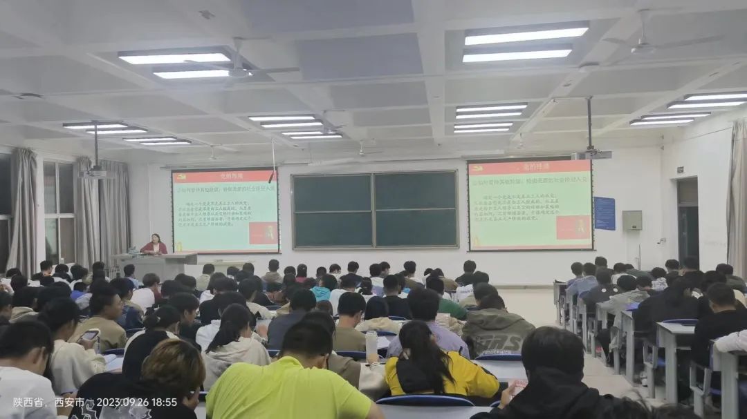 新时代学习新思想,新征程呼唤新担当。郝杰老师在讲解过程中以穿插视频的形式,让学生通过第一视角了解了党的奋斗历史;高蕾老师借鉴电影《建党伟业》让学生感受了一场身临其境的革命奋斗;焦登宁老师就党员是什么,如何成为一名党员,娓娓道来;康乃馨老师向同学们阐述了党性以及党最根本所在,使同学们清晰的认识到中国共产党是一个怎样的执政党。许梁老师向大家讲述了何为共青团,何为中国共产党;一百年多年来,中国共产党领导中华民族复兴伟业劈波斩浪、壮丽远航,中国共青团团结带领一代代中国青年奋楫争先。
