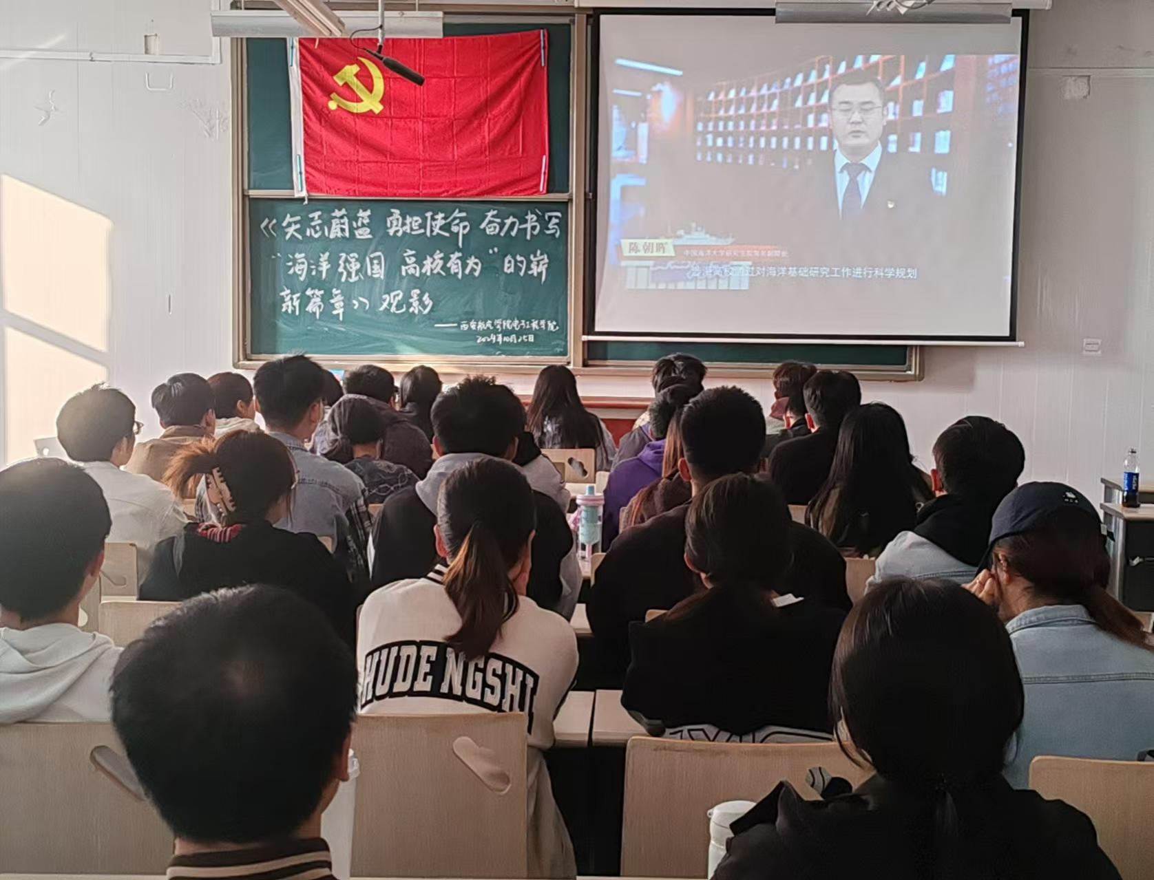 为深入学习贯彻习近平总书记关于海洋强国建设的重要论述,10月25日,beat365中文官方网站组织学生党员在阎教1320教室集中观看了2024年高校党组织示范微党课(第二阶段)第九讲——《矢志蔚蓝 勇担使命 奋力书写“海洋强国,高校有为”的崭新篇章》,作为本主题的最后一讲,本期微党课内容丰富、视角多元,深入展示了高校在服务海洋强国建设中的生动实践和突出贡献。
