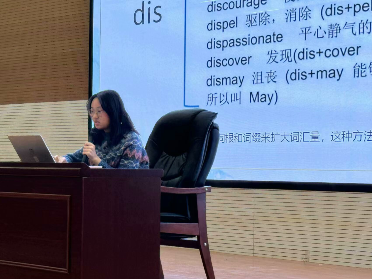 紧接着,傅燕宁同学带来了“如何从多方面准备英语四级”的精彩分享,结合幽默风趣的短视频讲述了英语四级的备考策略以及自己在英语学习中的心得与感悟,为后续参加英语四级考试的同学们提供了宝贵的建议。