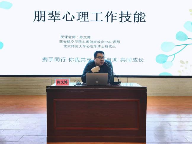在培训过程中,陈文博老师从心理健康基础知识科普和朋辈队伍心理工作技能两个方面进行了讲授。陈老师结合丰富生动的、大学生身边的事例,深入浅出地解读了心理健康基础知识,介绍了良好心理健康状态的重要性。同时,陈老师立足于我校四级心理健康网络建设,面向心理委员、宿舍心灵护航员,对朋辈队伍心理工作技能进行培训,明确了朋辈队伍心理工作内容,指导同学们要会观察、会判断、会倾听、会理解,鼓励同学们会助人、善助人、有爱心、情商高。