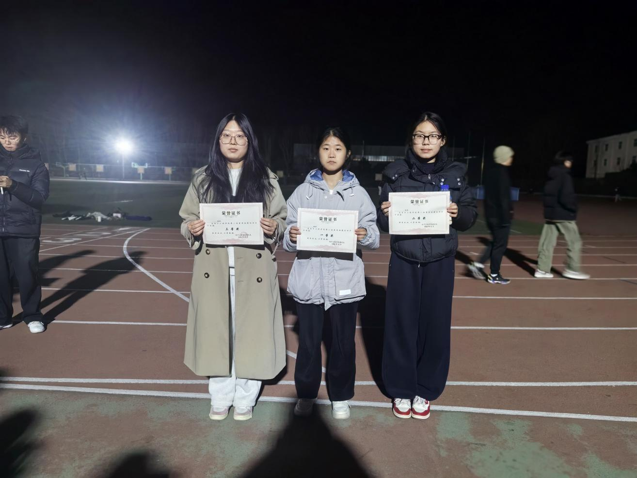 赛事结束后,评委根据规则统计成绩,四大组别(立定跳远男、立定跳远女、引体向上、仰卧起坐)分别取前六名颁发奖状,其中一等奖1名、二等奖2名、三等奖3名,所有参与者均获得体育锻炼学分。