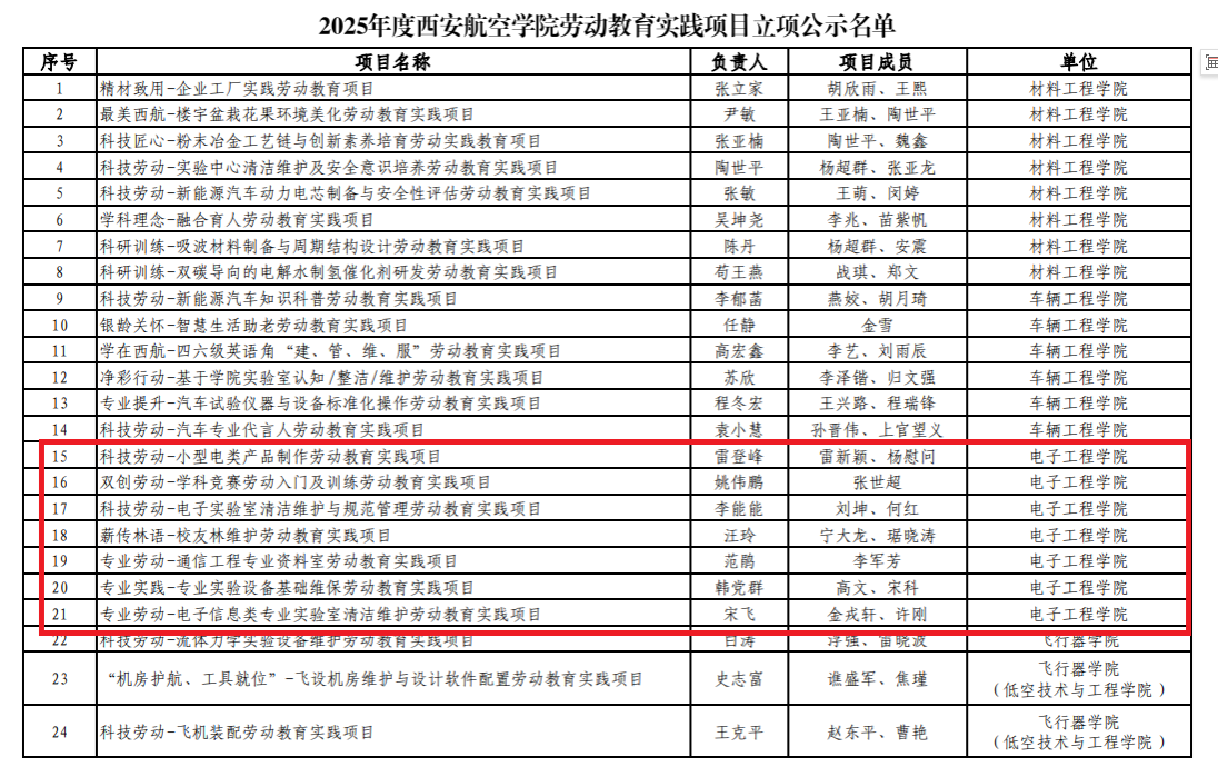 根据《关于征集2025年度beat365中文官方网站劳动教育实践项目的通知》要求,经项目负责人申报、单位推荐、专家评审等程序,拟立项beat365中文官方网站2025年度劳动教育实践项目65项,现予以公示(名单见附件)。