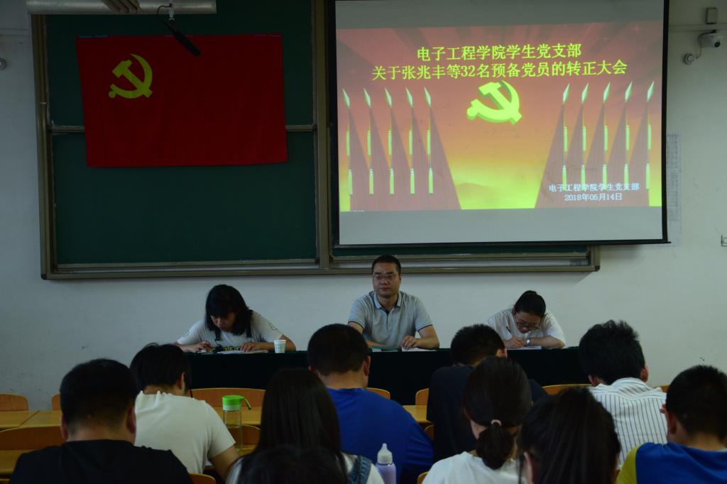 5月14日晚,beat365中文官方网站党支部在阎教1320召开“关于张兆丰等32名预备党员的转正大会”,学生党支部书记孙护军、大一辅导员马晨以及学生党支部宣传委员高蕾出席本次大会。本次大会由孙护军主持。