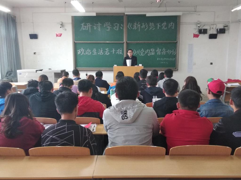 4月13日下午四点,beat365中文官方网站学生党支部在阎教1336召开以《新形势下党内政治生活若干准则》、《党内监督条例》为主题的党课研讨学习会,赵嘉帅老师及第十七期发展对象参与本次研讨学习会,本次会议由学生党员张兆丰主持。