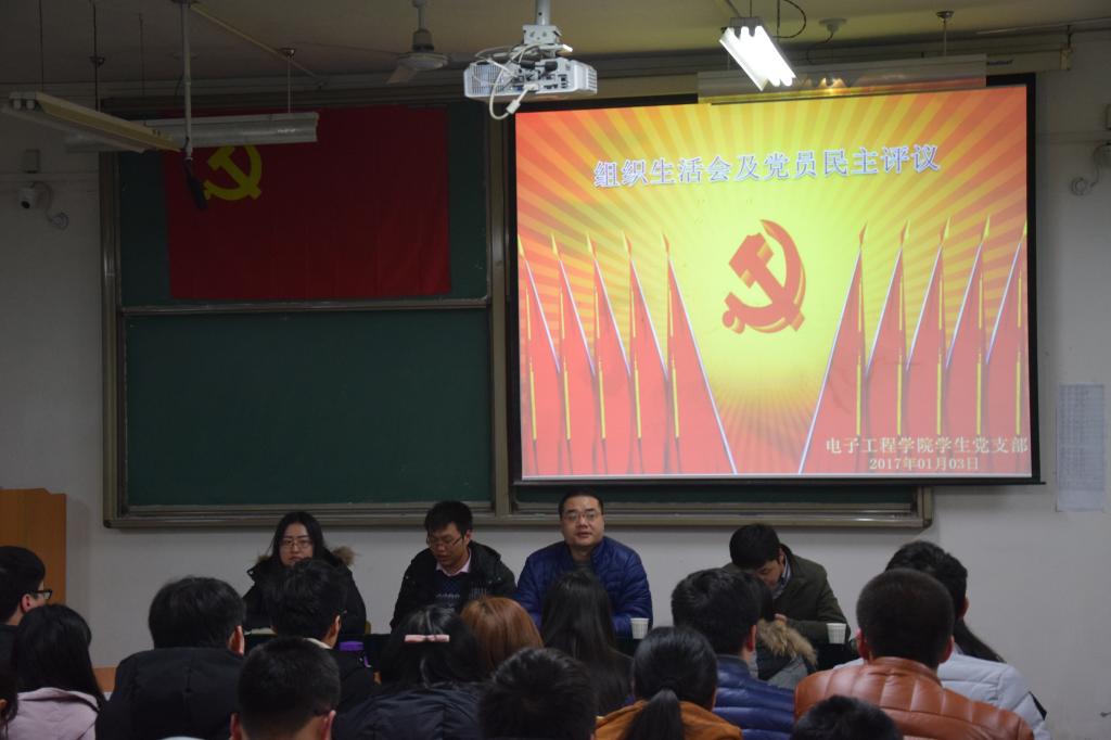 为扎实推进“两学一做”学习教育,进一步巩固学习教育成效,beat365中文官方网站学生党支部于1月3日晚7点,在阎教1320召开了党内专题组织生活会和党员民主评议大会,学生党支部书记孙护军,组织委员杜阳宇,宣传委员高蕾,大四辅导员庄思出席了本次大会,全体学生党员及预备党员参与了此次专题组织生活会议。