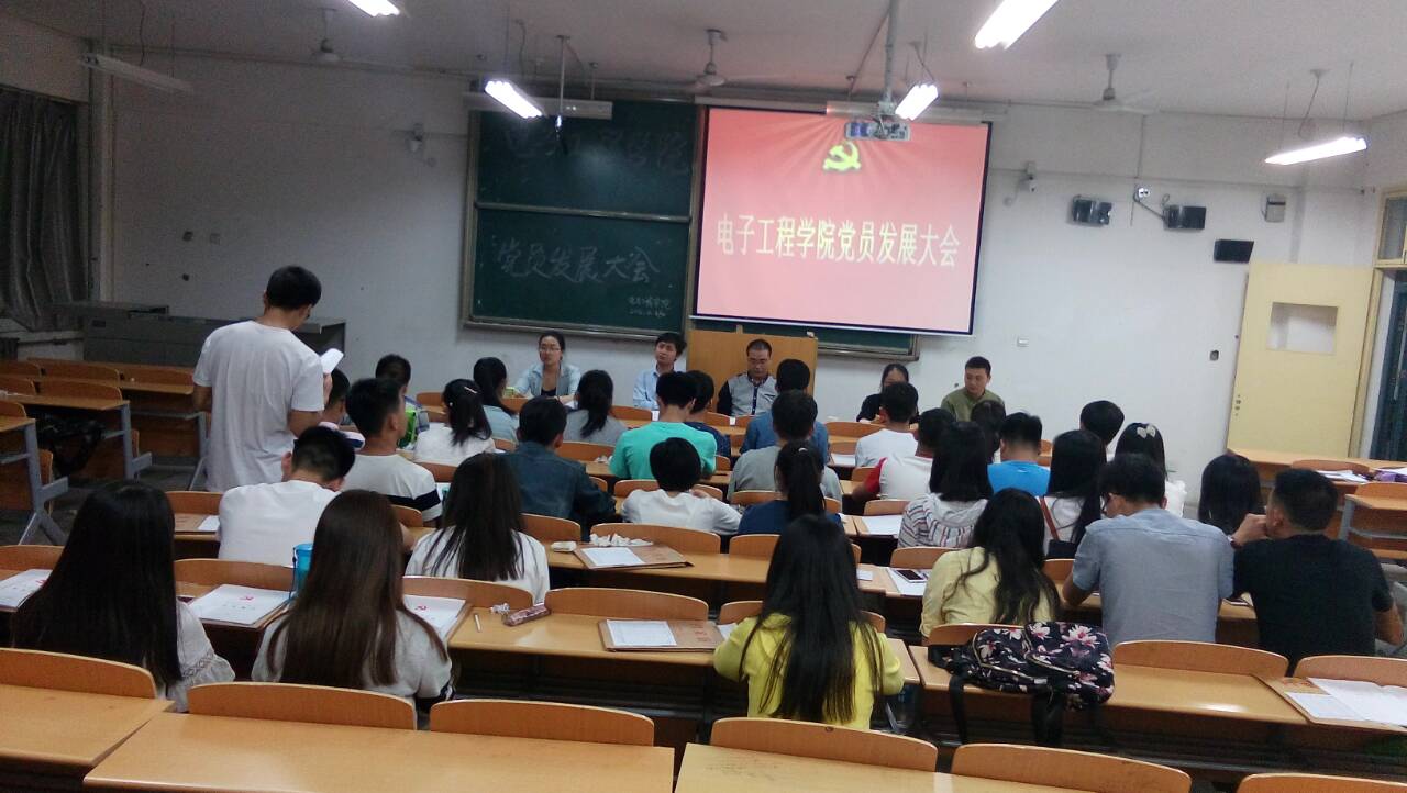 4月28日19:00,beat365中文官方网站学生党支部于阎教1322教室组织召开了党员发展大会,会议由学生党支部书记孙护军老师主持,全体党员,以及王阿晨等三十四名入党积极分子参加大会。
