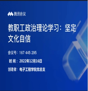 2022年12月16日下午,电子工程学院党总支组织全体进行教职工政治理论学习,会议邀请李季校长作“坚定文化自信”主题报告。会议由电子工程学院党总支书记侯睿主持。