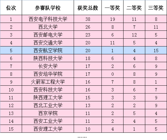 陕西赛区本科组按获奖总数排名