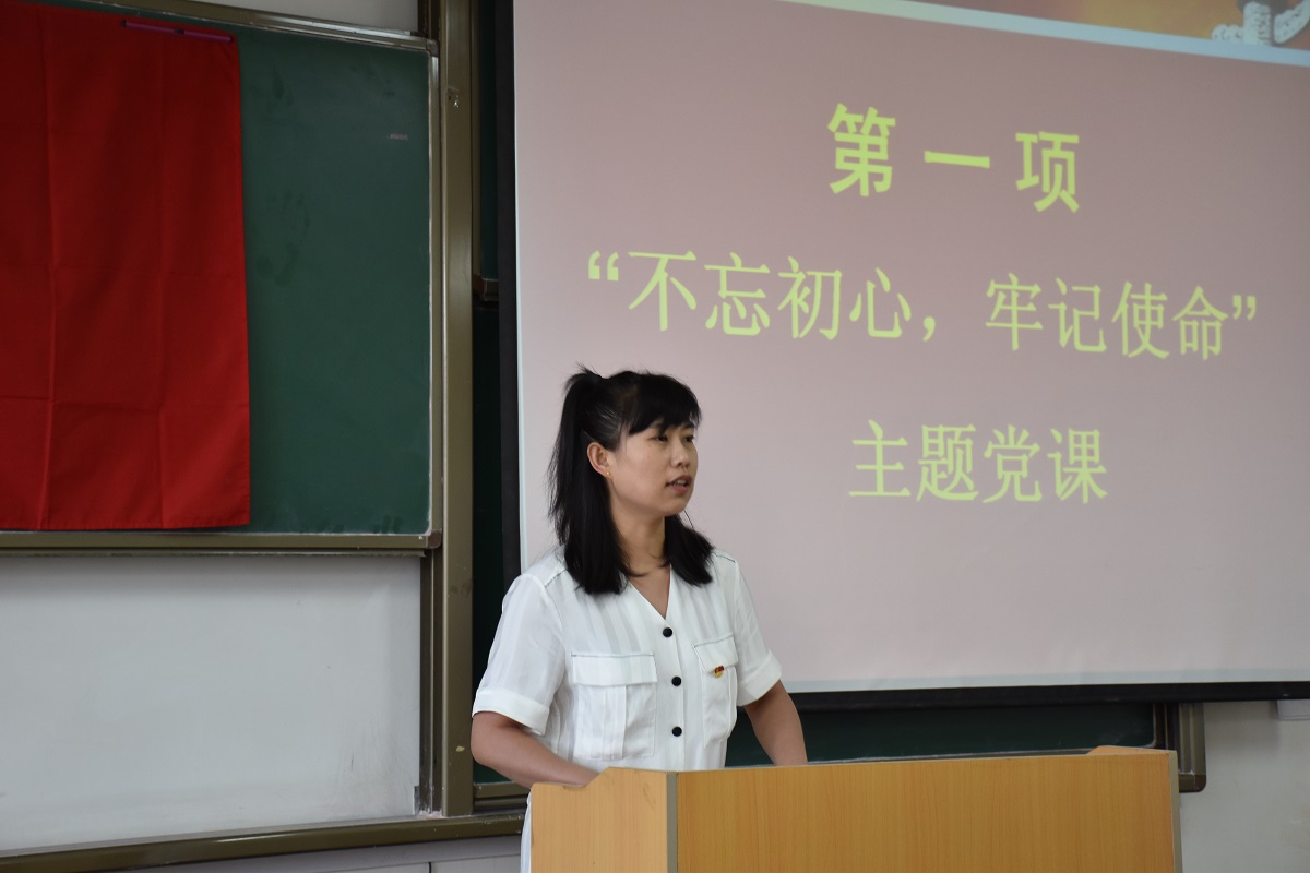 会议伊始,由马晨带领大家学习“不忘初心,牢记使命”主题党课。希望各位党员同志要在今后的学习和工作岗位上发挥党员的先锋模范作用,把先进标尺立起来,把先锋形象树起来,不忘初心、牢记使命,立志为党和人民事业而奋斗”。主持人马晨老师希望各位党员同志加强党性锻炼,锤炼过硬作风,牢固树立“四个意识”,坚定“四个自信”,自觉做到“四个合格”,充分发挥模范带头作用。