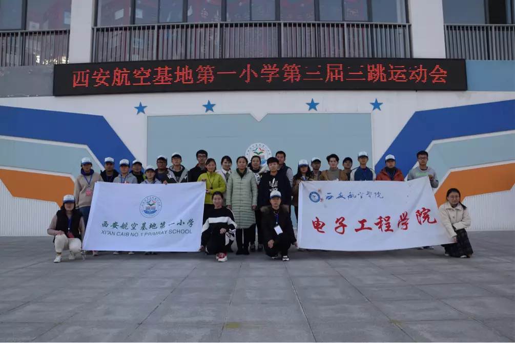 2018年11月23日,阎良航空基地第一小学举办“三跳”运动会,beat365中文官方网站团总支社会实践部和青年志愿者中队联合协助一小师生完成本次运动会的举办。志愿者们与小学师生通力合作,确保了这次运动会的圆满成功。