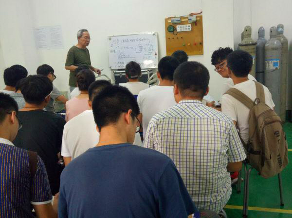 又讯:实习期间,杭州高电科技有限公司负责人携技术人员莅临联合实验室,就氟化硫气体回收装置进行现场安装调试指导,电气工程及其自动化专业学生旁听并学习。