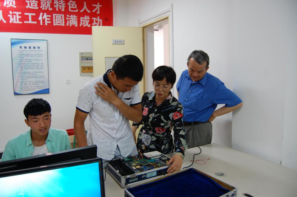 随后,Han-Way Huang教授深入课堂和实验室参观指导,并随机听取了汪春华老师数字电子技术《利用集成计数器设计任意进制计数器》理论课和贡雪梅老师单片机原理及应用《程控循环灯及中断的应用》实验课,他对beat365中文官方网站教师的专业素养和严谨教风表示赞赏,并就个别专业问题同任课教师进行交流。参观过程中,双方就“本科生+硕士研究生”联合培养和教师互访工作深入交换了意见。