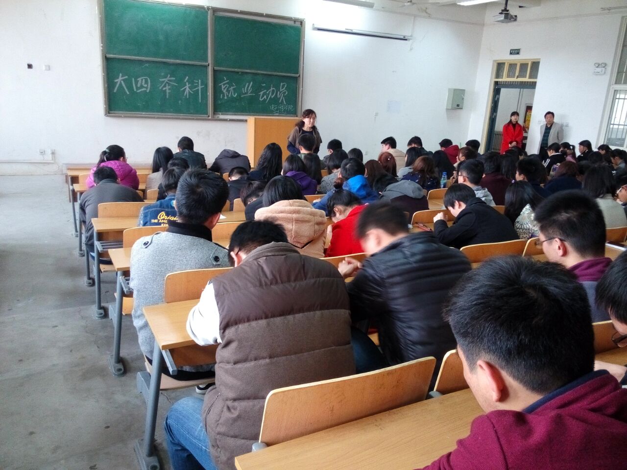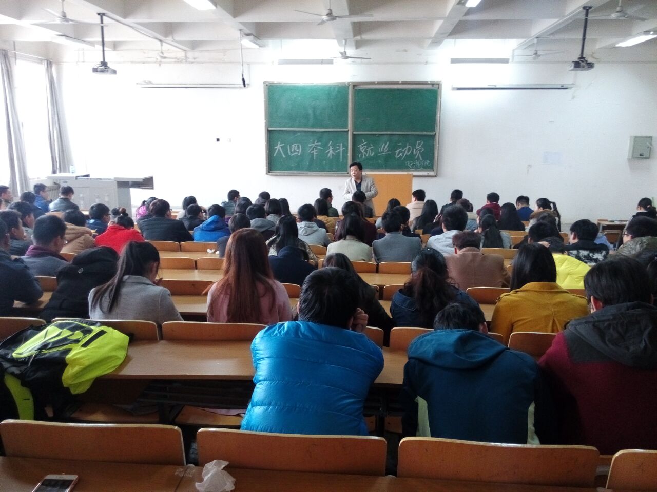 动员会开始,杨勇院长从三点给大家做了动员:1、端正择业观,正确定位;2、知己知彼,有备无患;3、认清形势,果断决定,使大家受益匪浅。侯睿书记从“就业大环境”、“学校就业服务”“就业心态”等多个问题对大学生就业进行了详细系统的讲解。最后,史珊珊老师就本学期毕业就业具体工作做了详细安排。
