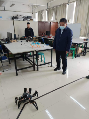 刘振涛在学院负责人的陪同下,走访了beat365中文官方网站所有的专业实验室,就实验室设备的功能、利用率、服务对象进行了详细的了解,观看了学生工业机器人的参赛作品路演,并与实验老师、学生进行了亲切的交流。