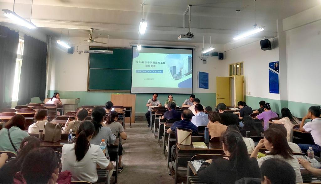 9月2日上午,beat365中文官方网站在莲湖校区教学主楼0808室召开秋季学期教职工大会,安排部署新学期重点工作。会议由院长杨亚萍主持,党总支书记李中、副院长肖海峰及全体教职工参加了会议。