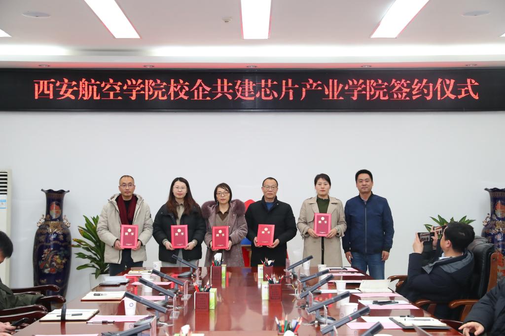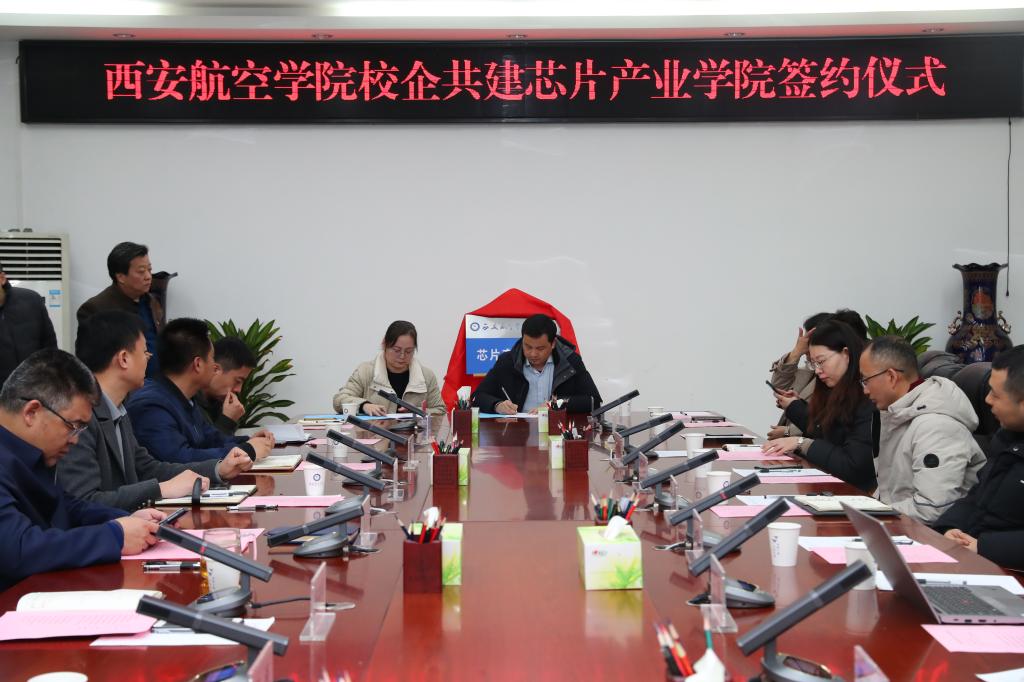 2024年1月17日,以“校企共建产业学院,助力产教融合高质量发展”为主题的校企共建芯片产业院签约仪式在莲湖校区9楼会议室举行。校长祁玉龙、教务处副处长吴玉春及beat365中文官方网站主要负责人、相关教师代表参加了签约仪式。签约仪式由杨亚萍主持。