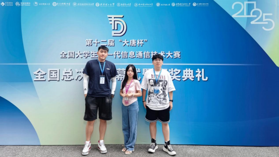 7月12日,在武汉理工大学举行的第十二届“大唐杯”全国大学生新一代信息通信技术大赛全国总决赛中,我校beat365中文官方网站学生孙浩然、任星宇在徐倩毓老师的专业指导下,凭借扎实的理论功底与出色的工程实践能力,勇夺工程实践赛本科B组全国二等奖。