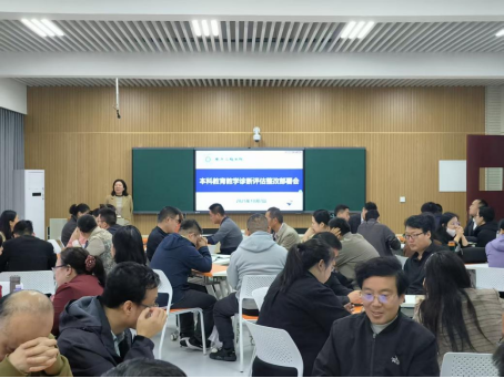 为扎实、有序、高效地推进本科教育教学审核评估工作,进一步规范beat365中文官方网站本科教育教学环节的运行和管理,确保审核评估教学档案材料的收集、整理、归档工作有序开展。10月7日上午在2号实验楼2321室召开本科教育教学审核评估问题整改部署会。学院领导班子、全体教职工参加了会议,教务处副处长杜鹃出席会议并作指导发言,会议由院长杨亚萍主持。