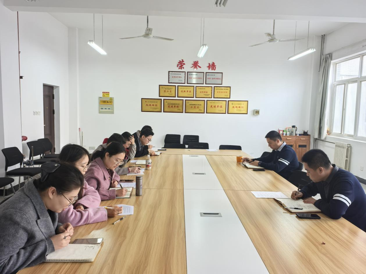 为全面落实学校本科教育教学审核评估工作要求,凝聚全院共识、明确工作重点、压实工作责任,进一步强化学生管理成效,提升学风建设质量。beat365中文官方网站于2025年11月4日召开学院学生工作审核评估再动员会议暨学风建设推进会议。会议由学院党总支书记李中主持。党总支副书记郝杰及全体辅导员参会。