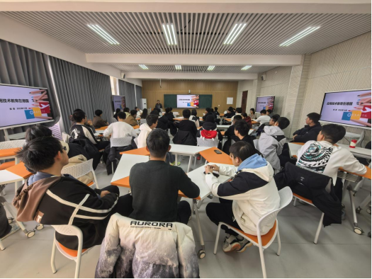 杨勇教授围绕德国高等教育体系、职业培训与双元制教育、应用技术型高等教育组织与实施、经验借鉴与思考四大板块展开详细阐述。他指出,德国双元制教育历史悠久,由企业和职业学校共同承担叫教学任务,形成“通识课程+职业相关课程”的合理配比。针对应用技术型高等教育,杨勇教授以代根多夫应用技术大学为例,详解其组织架构与运行机制。随后,杨勇结合我国应用技术教育发展现状,提出应深化产教融合、建立技术校区,以区域产业需求为导向优化课程体系,将新技术、新工艺纳入教学内容等建议。讲座尾声,杨勇教授与现场师生进行互动交流。整场讲座内容丰富、逻辑清晰,既有理论高度,又有实践案例支撑,不仅让师生对德国应用技术教育体系有了全面系统的认识,更激发了大家对应用技术教育创新发展的深入思考。