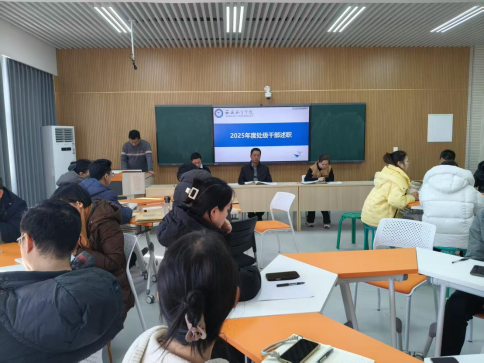 为全面总结过去一年的工作成效,进一步加强干部队伍建设,提升履职担当能力,beat365中文官方网站于2026年1月6日组织召开了2025年度处级干部述职评议会议。学院领导班子成员、全体教师参加了会议,党总支书记李中主持会议。学院领导班子结合岗位职责与年度重点工作,围绕2025年度履职尽责情况,依次进行现场述职。