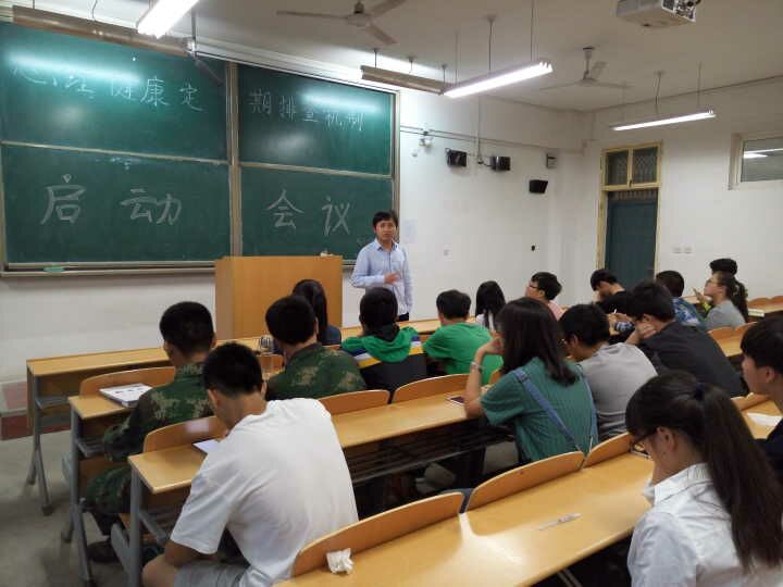 427日晚七点,心灵驿站在阎教楼1324教室举行了心理健康定期排查机制启动会议。庄思老师出席了此次会议并就学生工作做了简单安排,心灵驿站站长袁帅,副站长陈轲及各班的心理委员参加了此次会议。