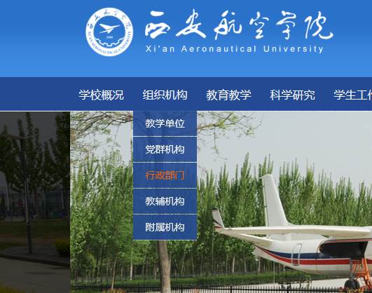 步骤一:进入学院主页,点击组织机构—行政部门