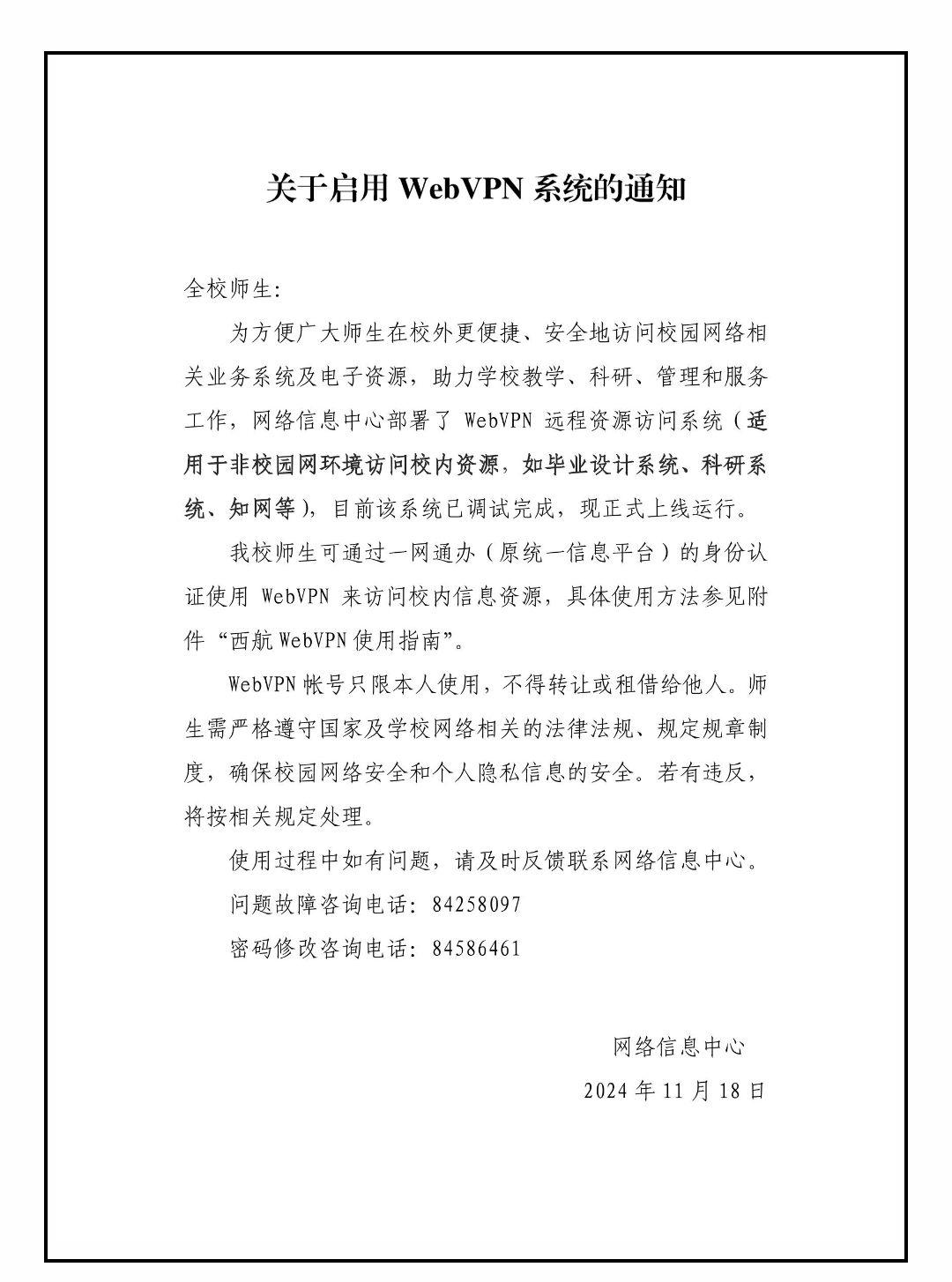 关于启用WebVPN系统的通知