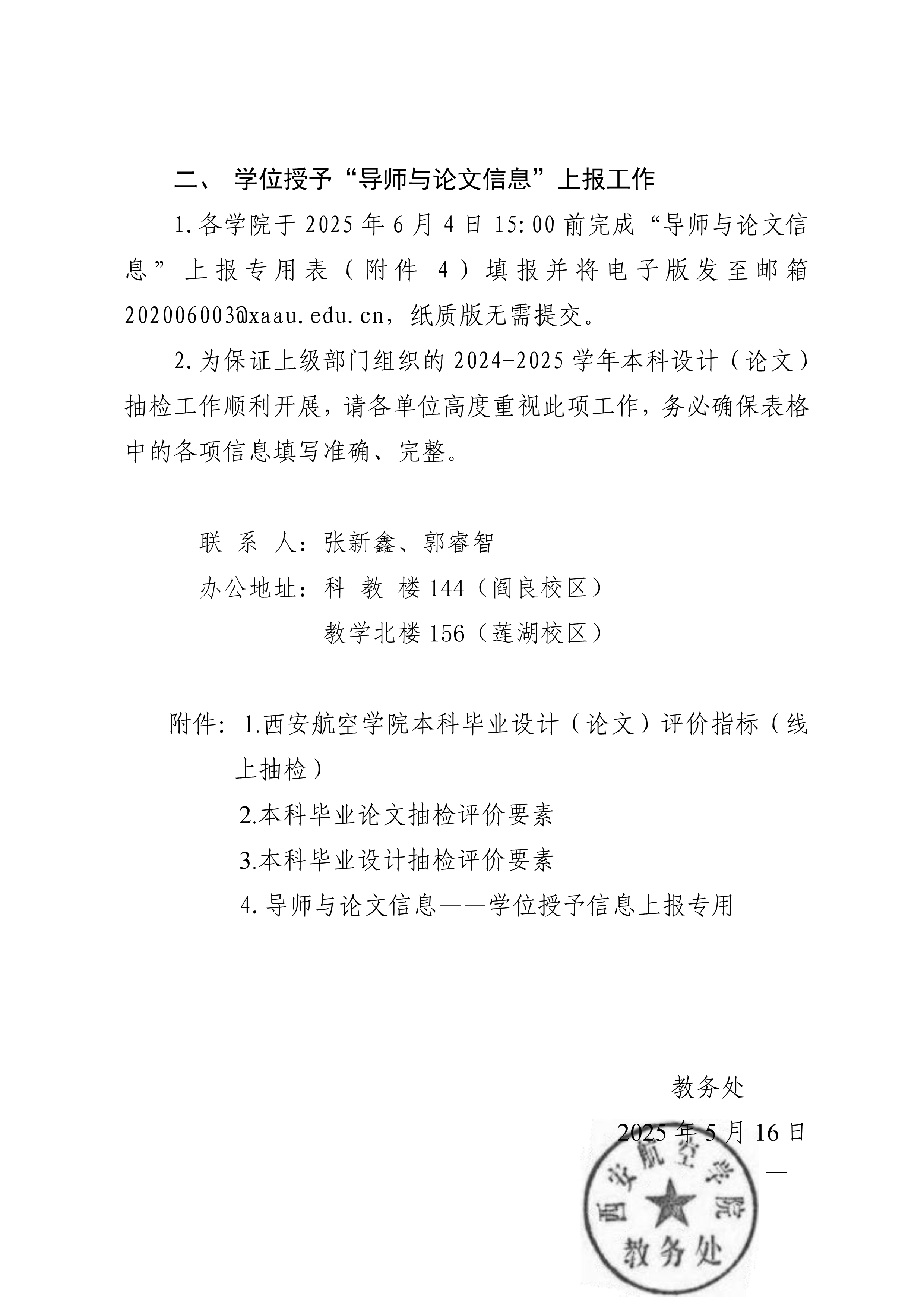 附件下载:OA—关于开展2025届本科毕业设计(论文)抽检工作、学位授予“导师与论文信息”上报工作的通知.pdf