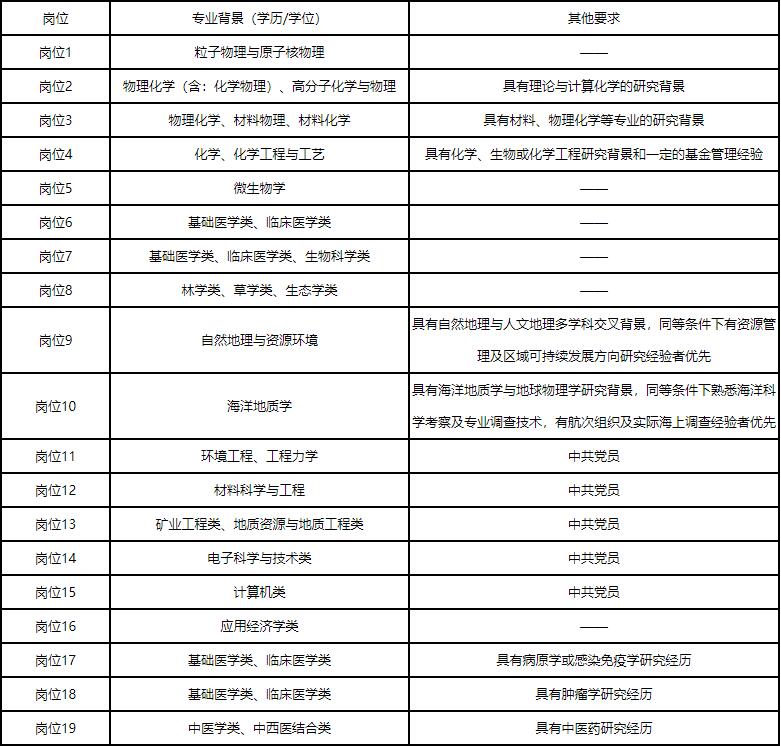 2.科学部综合与战略规划处一般工作人员岗位应具有博士学历学位,年龄一般不超过35周岁,具有高级专业技术职务者可放宽至40周岁;科学处项目主任岗位应具有相关专业博士学历学位和副高以上专业技术职务,年龄一般不超过40周岁;